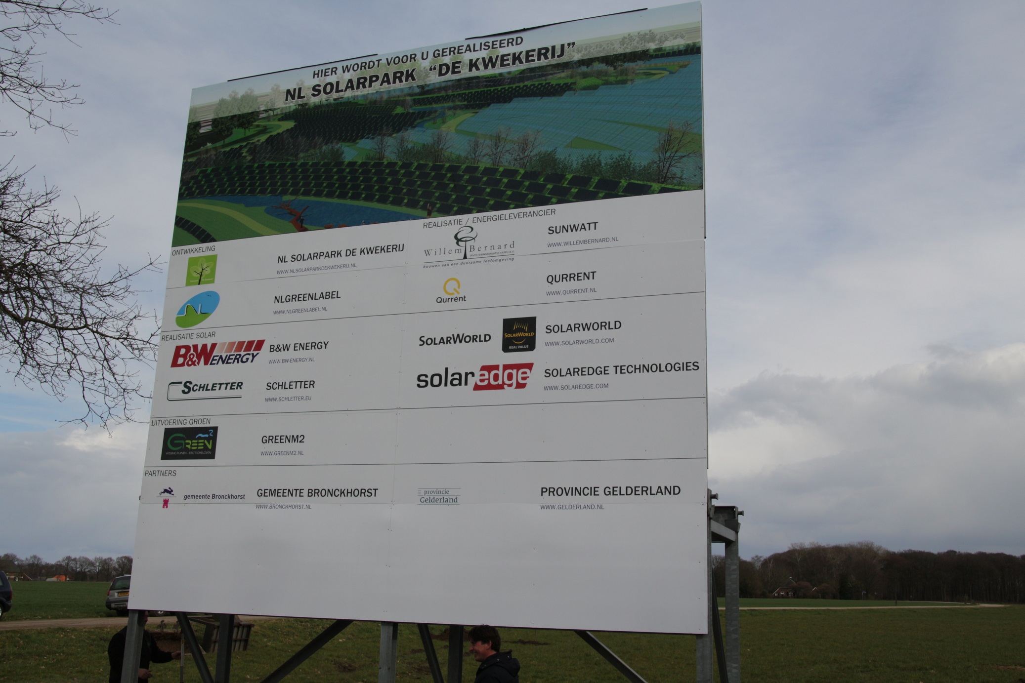 Solarpark de Kwekerij is ontwikkeld door Gaby en Ton Koenders van NL Solarpark de Kwekerij BV samen met Lodewijk Hoekstra en Nico Wissing van NL GreenLabel; Sunwatt BV, onderdeel van Willem-Bernard Investeringsmaatschappij, en energiecoöperatie Qurrent. Vanuit gemeente Bronckhorst en de provincie Gelderland is volop medewerking verleend. Behalve grootschalige duurzame energie opwekking heeft het park een wereldprimeur: een toegankelijk landschappelijk park met wadi’s, speel- en wandelgelegenheden, bloemrijke grasvelden en bijzondere bomen.